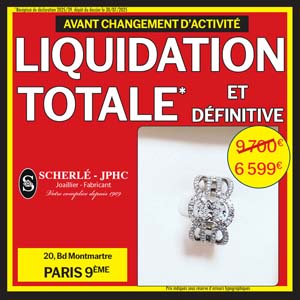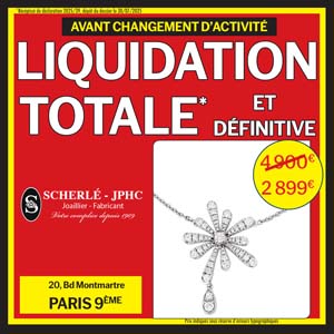 Retrouvez toutes les informations concernant la bijouterie et une liste non exhaustive des bijoux d’exception vendus à PRIX LIQUIDÉS !